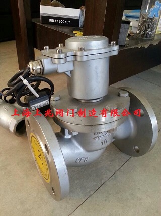 该系列电磁阀由先导阀和主阀芯联系着形成通道组合而成;常闭型在未通电时,呈封闭状态。当线圈通电时,产生的磁力使动铁芯和静铁芯吸合,导阀口打开,介质流向出口,此时主阀芯上腔压力减少,低于入口侧的压力,形成压差克服弹簧阻力而随之向上运动,达到开启主阀口的目的,介质畅通流畅。当线圈断电时,磁力消失,动铁芯在弹簧力作用下复位封闭先导口,此时介质从平衡孔流入,主阀芯上腔压力增大,并在弹簧力的作用下向下运动,封闭主阀口。常开式原理正好相反。如:SLA,DF(φ15以上口径),ZCZ等。(图三是典型结构图)