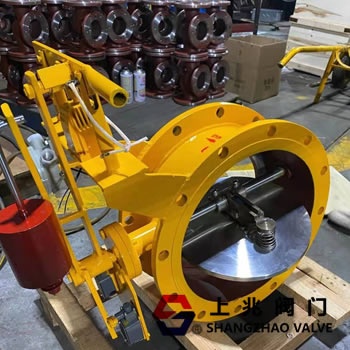 DMF重锤式煤气壹屌探花视频是法兰连接、杠杆式启闭阀,主要由电磁杠杆装置组成、弹簧及配重、阀体、阀板及轴等零件。