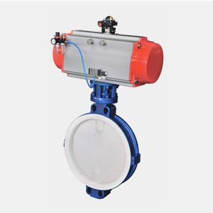 D671F46 衬氟对夹式气动蝶阀可代替探花网站免费观看阀门采用带有球形密封表面的衬聚四氟乙烯包衬蝶板,该阀门操作轻便,严密的密封性能,超长的使用寿命;可作快速切断或调节流量之用。适用于要求可靠密封和良好调节特性的场合。阀体采用分体式,阀轴两端的密封由蝶板与阀座 之间的旋转基面加氟橡胶来控制;保证阀轴不与腔内流体介质接触。气动衬氟蝶阀广泛适用于各种不同类型工业管道中液体和气体(包括蒸气)的输送,有严重腐蚀性介质的使用场合,如:硫酸、磷酸、氯气、强碱、王水等具有强腐蚀性的介质。